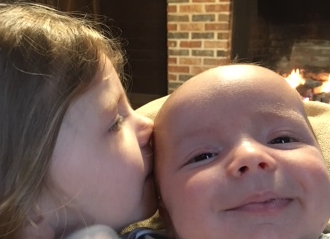 KB absolutely adores her baby brother, and is being a great big sister. She is always posing with him saying, “Wouldn’t this make a great picture?!” Here she is giving him a kiss on the cheek.